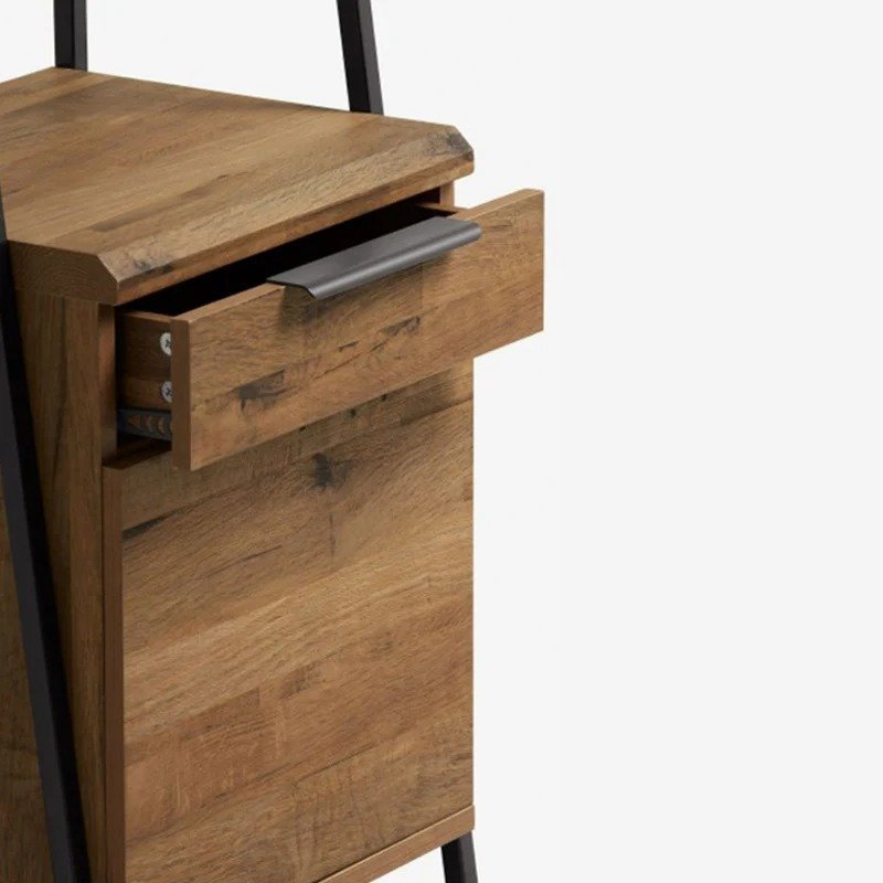 The Industrial 4-Tier Ladder Bookshelf combines vertical storage with an open-concept design to keep your room feeling airy and clutter-free. The sturdy metal frame provides a modern industrial foundation, while the four deep shelves offer varied heights for items of different sizes. To ensure stability, the unit is equipped with protective floor glides and a cross-bar reinforcement on the back, making it a reliable choice for holding everything from heavy hardcovers to delicate ornaments.