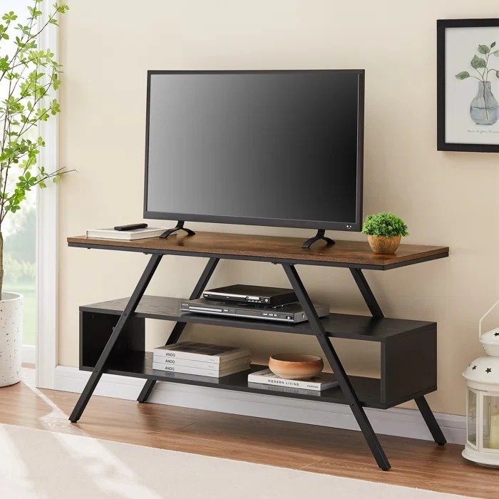 This LED Media Console is designed to be the focal point of your modern living space. It features built-in LED light strips with multiple color modes, allowing you to set the perfect ambiance for movie nights or gaming sessions via remote control. The open-concept tiers provide ample space for gaming consoles, cable boxes, and book collections, while the wide top surface can accommodate large television screens. Built with a reinforced structure, this unit combines high-tech functionality with a minimalist aesthetic, ensuring your electronics stay organized and beautifully illuminated.